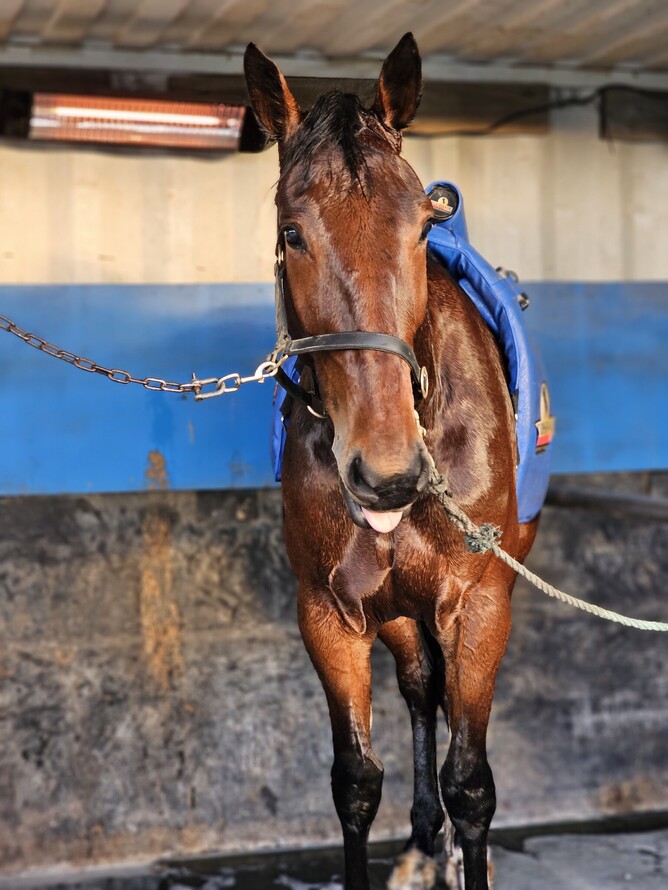 We're definitely on the winning edge with this big guy. He's gaining more confidence every time he steps out. There's a couple of handy maidens in here, but I'm sure he'll run a very nice race.