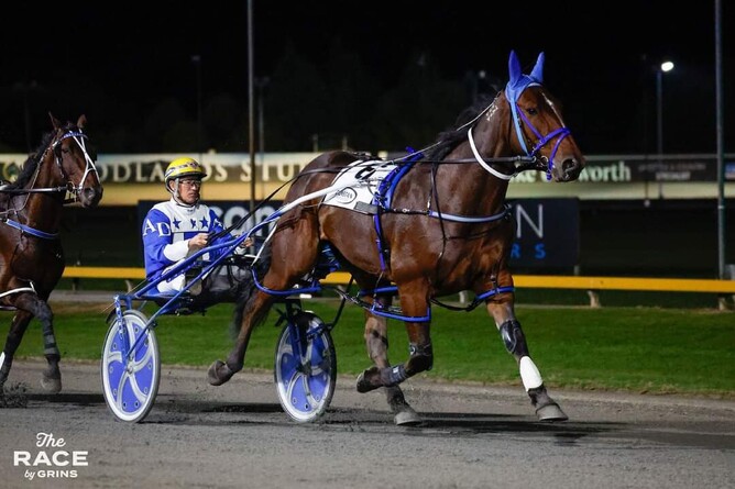 Kango was the headline act when running third in The Race by Grins. Driver David Butcher made the most of a perfect draw and it always looked like he'd be a top three or four chance when Don't Stop Dreaming easily held the lead.