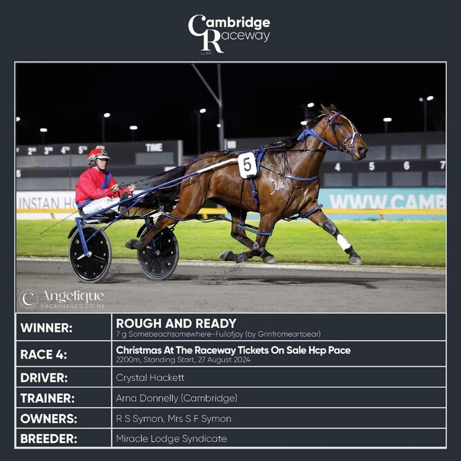 It was a sense of relief for trainer Arna Donnelly when Rough And Ready took out the feature pace at Cambridge last night.