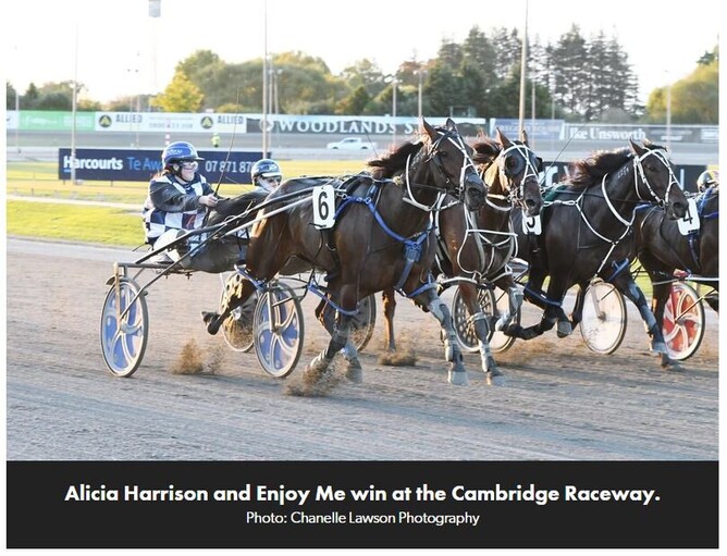 Alicia Harrison enjoyed being back doing what she loves at Cambridge Raceway on Thursday – driving winners.